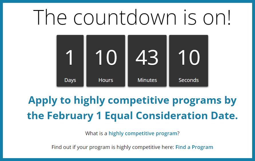 Applying to College Please visit https://ontariocolleges.ca/ if you are applying to College for September. As of the time of this post….. [January 31st just after 1:00 p.m.] here is your countdown. Deadline is February 1st for Equal Consideration! By stdavidadmin|2023-01-31T13:21:50-05:00January 31st, 2023|NewsWire|Comments Off on Applying to College Share This Story, Choose Your Platform! FacebookXLinkedInEmail