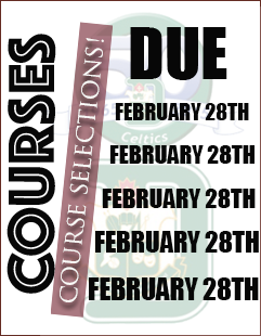 Course Selections Due February 28th REMINDER TO STUDENTS & PARENTS Course Selections for the 2023-2024 school year are due February 28th, 2023. By stdavidadmin|2023-02-21T15:16:35-05:00February 21st, 2023|NewsWire|Comments Off on Course Selections Due February 28th Share This Story, Choose Your Platform! FacebookXLinkedInEmail