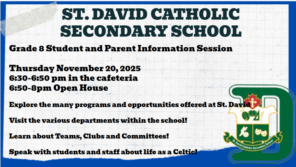 Grade 8 Night @ St. David’s By stdavidadmin|2025-11-04T11:44:18-05:00November 4th, 2025|NewsWire|Comments Off on Grade 8 Night @ St. David’s Share This Story, Choose Your Platform! FacebookXLinkedInEmail