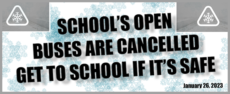 SCHOOL IS OPEN – BUSES ARE CANCELLED By stdavidadmin|2023-01-26T06:49:24-05:00January 26th, 2023|NewsWire|Comments Off on SCHOOL IS OPEN – BUSES ARE CANCELLED Share This Story, Choose Your Platform! FacebookXLinkedInEmail